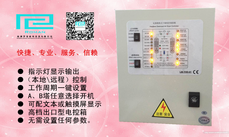 LM-YHD系列吸附无热式干燥机控制箱采用LM-22PLC,比市场上的单片机控制更可靠、简单。